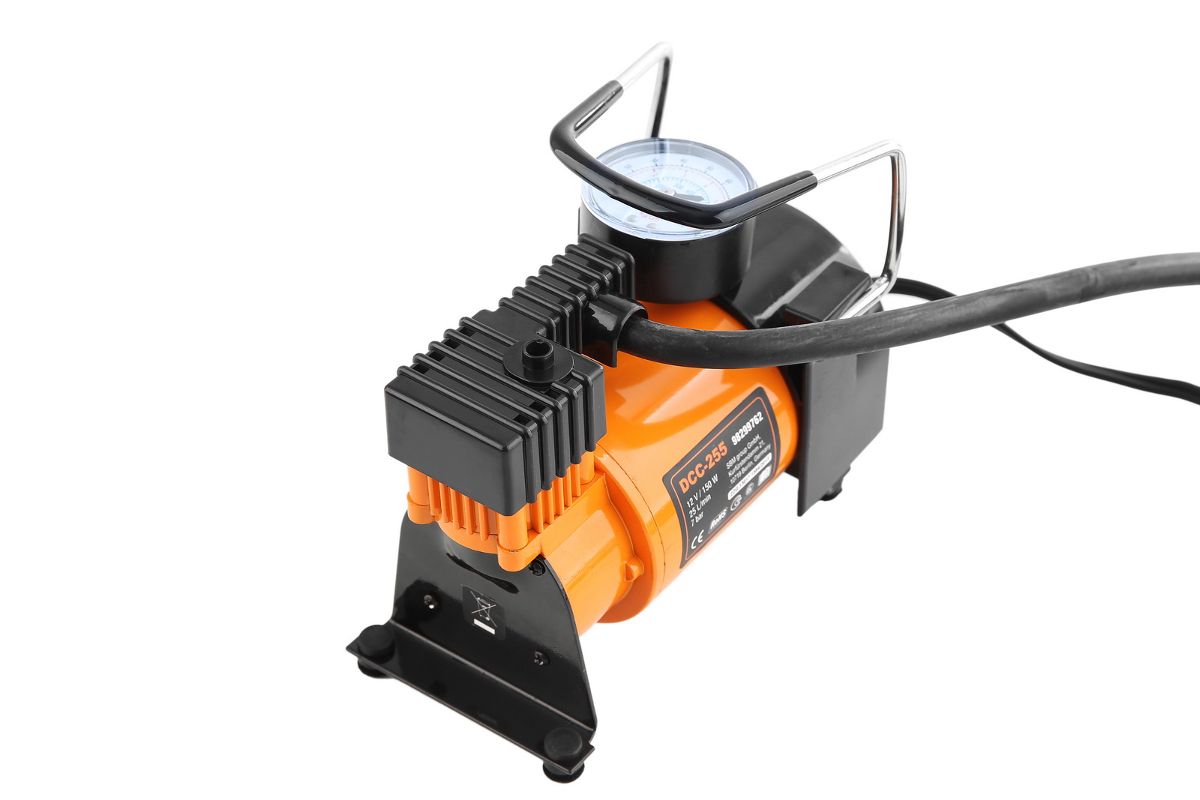 Компактный и удобный насос-компрессор для накачивания легковых шин. Мощности двигателя и максимального давления на выходе в 7 бар вполне достаточно для подкачки шин даже большого диаметра. Для удобства использования и защиты встроенного манометра на верхней части насоса расположена металлическая скоба. Ножки насоса имеют антивибрационные накладки, с помощью этих накладок гасятся вибрации и лишние шумы. Воздушный шланг снабжен прочным металлическим резьбовым клапаном. В комплекте имеются насадки: игла для подкачки мячей и две пластиковые насадки для накачивания матрасов, детских игрушек, бассейнов и тд. Дополнительным бонусом идет сумка, в которой удобно хранить и переносить этот стильный насос-компрессор.