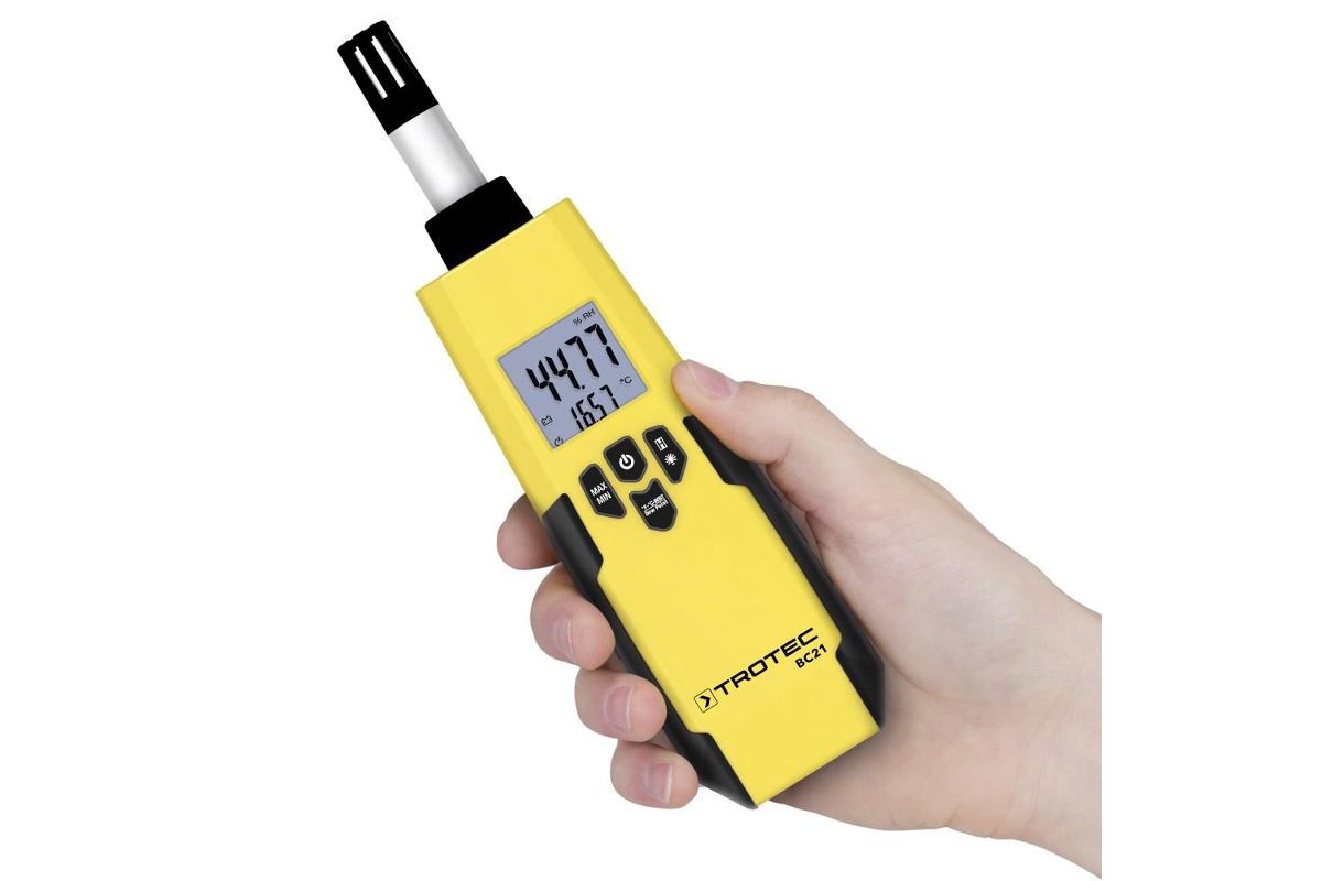 Термогигрометр с широким диапазоном измеряемых температур TROTEC BC21 – это портативное устройство с двойным дисплеем для одновременного отображения показателей температуры и влажности воздуха. Дополнительная функция измерения температуры смоченного термометра позволяет использовать BC21 в планировании, измерении и контроле производительности систем кондиционирования и вентиляции.