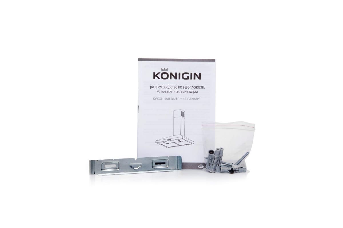 - Техническое исполнение и качество стыковки составных элементов вытяжек Konigin на высоком уровне. Шурупы и острые элементы исключены, зазоры минимальны, что придает изделию красивый внешний вид и ощущение целостности изделия.